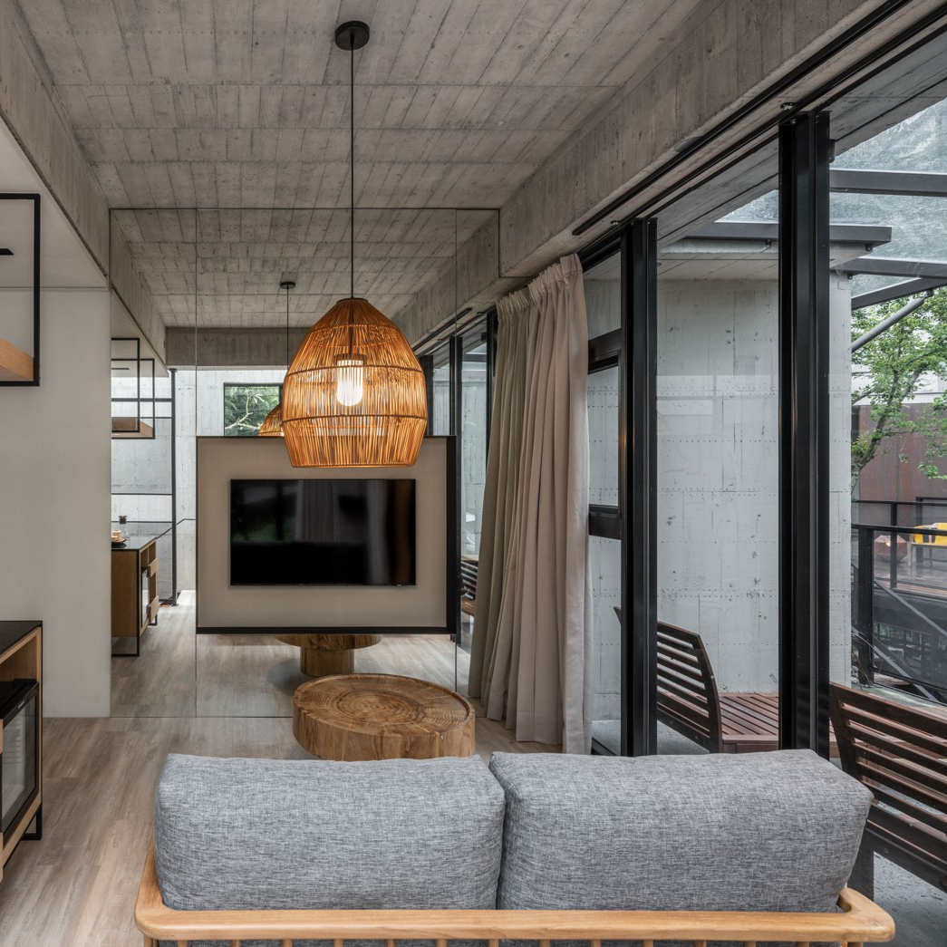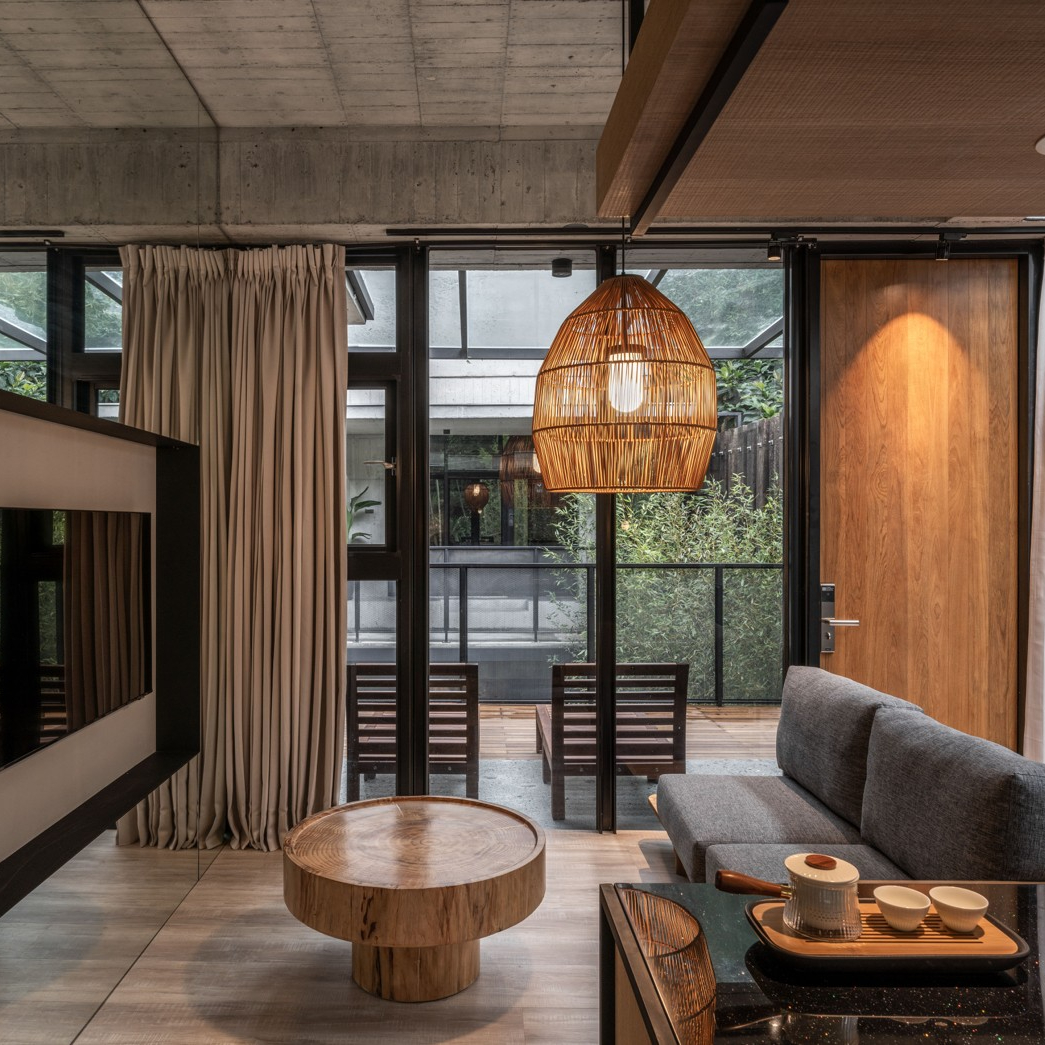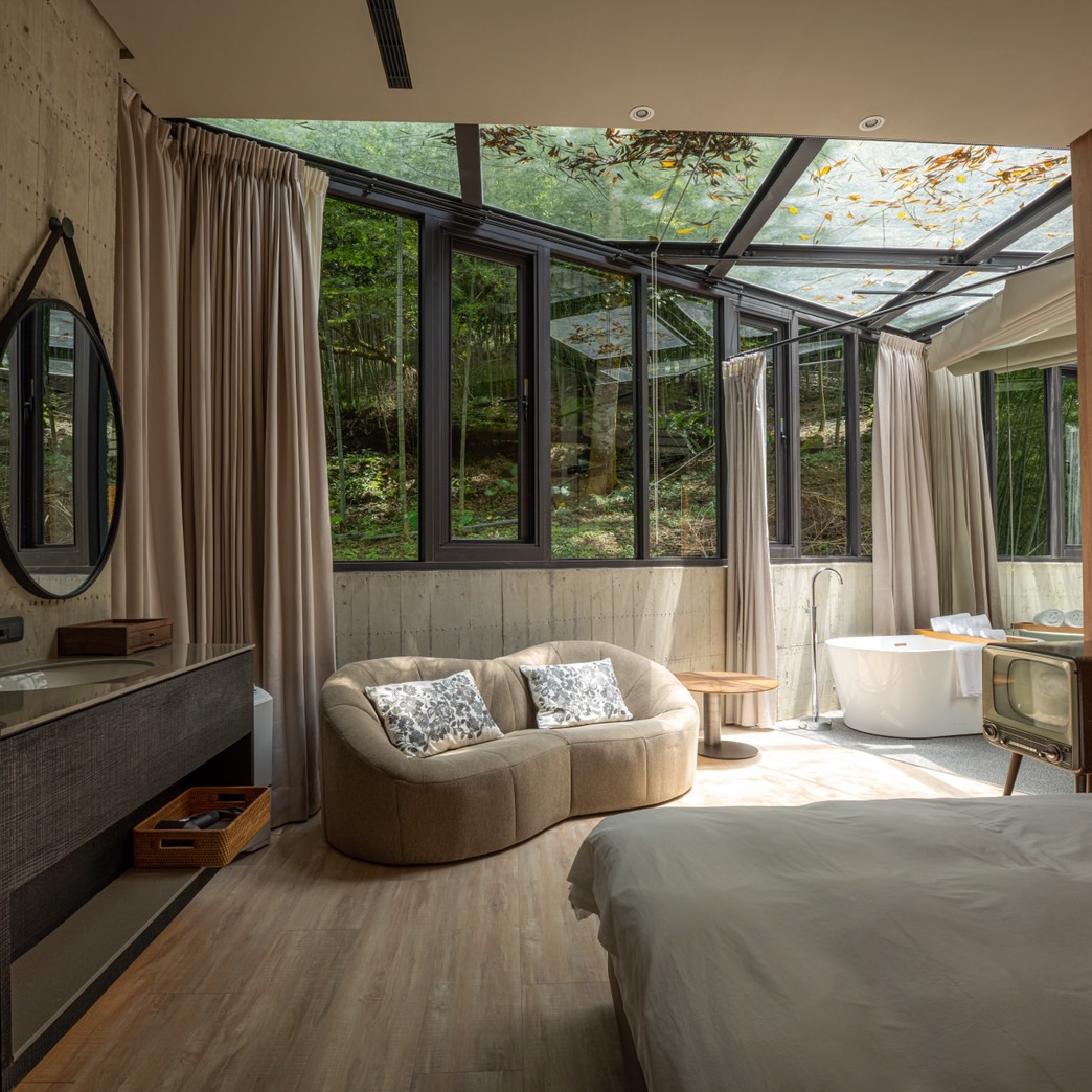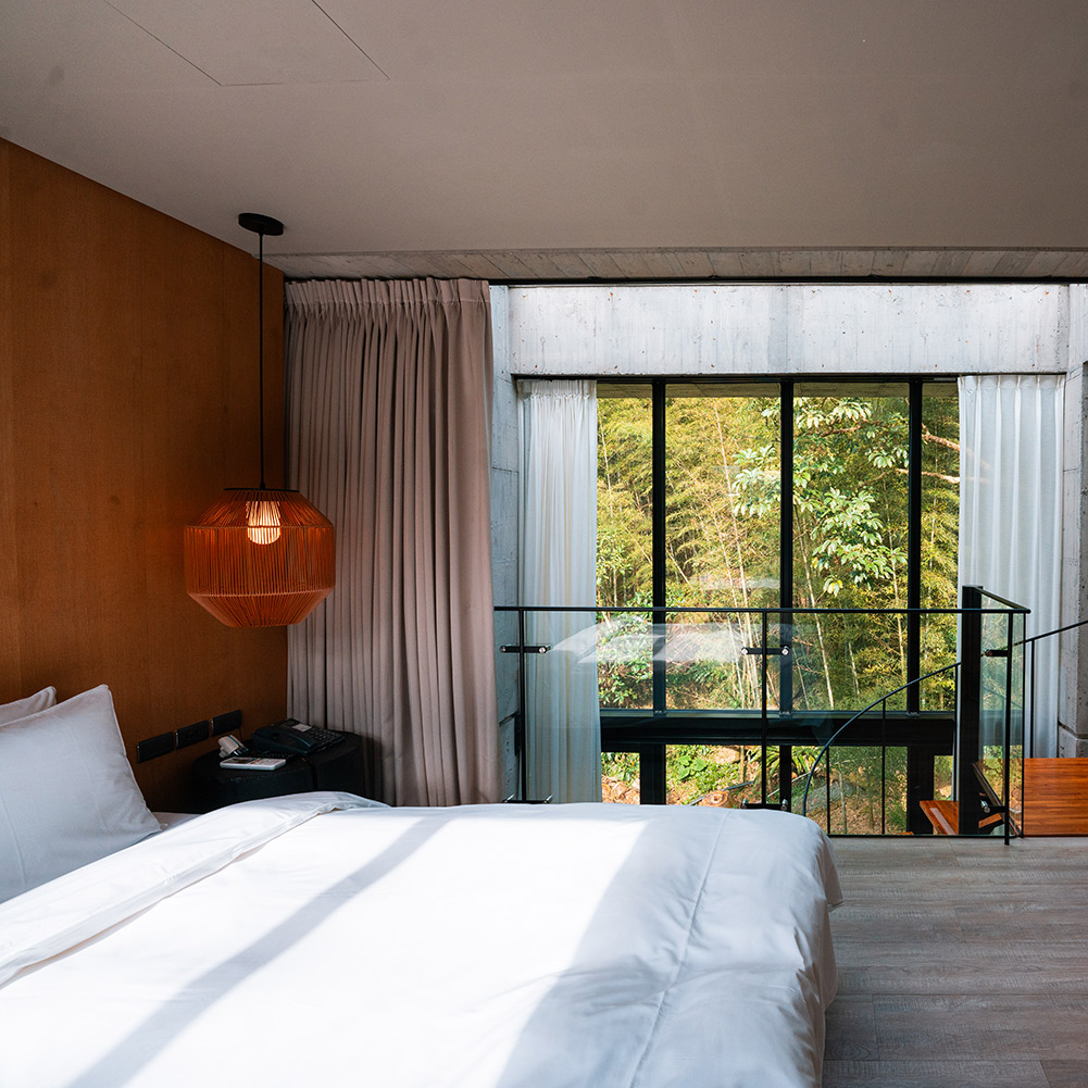 ★秘穴是樓中樓立體格局中,絕無僅有動線往下的雙人房型,獨享整層衛浴空間,客廳的大面落地窗;特別規劃私人小院落,坐在戶外躺椅,是唯一可以看到「野炊台」的專屬露台。