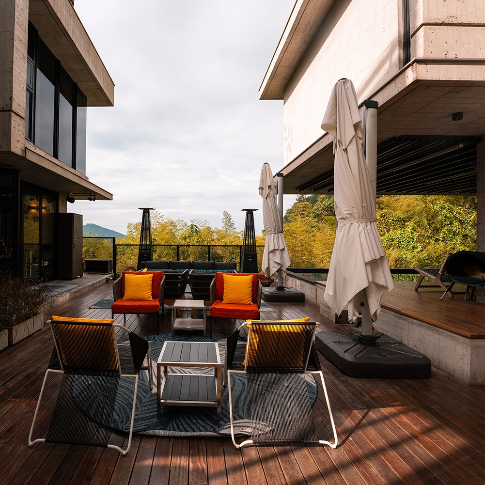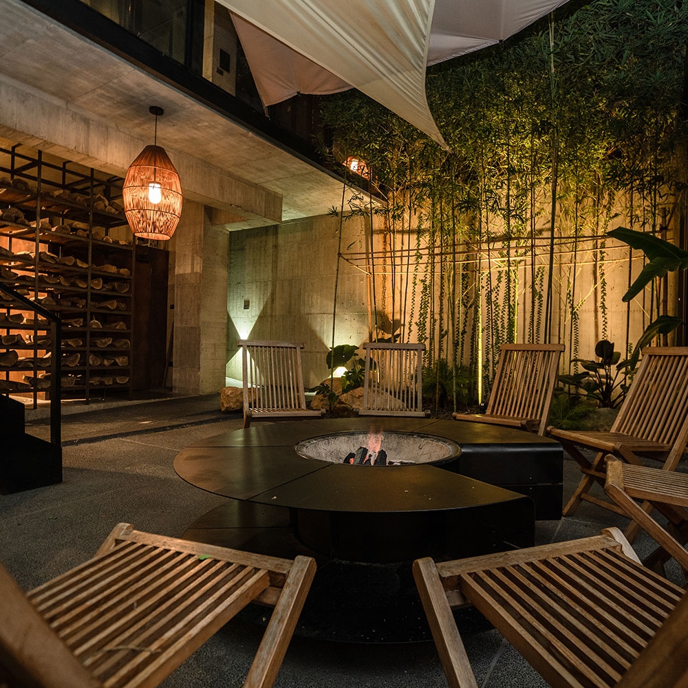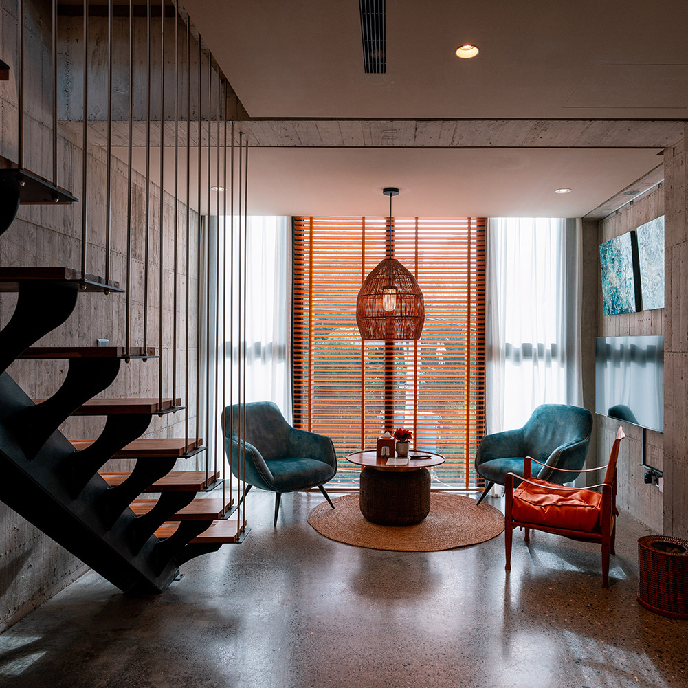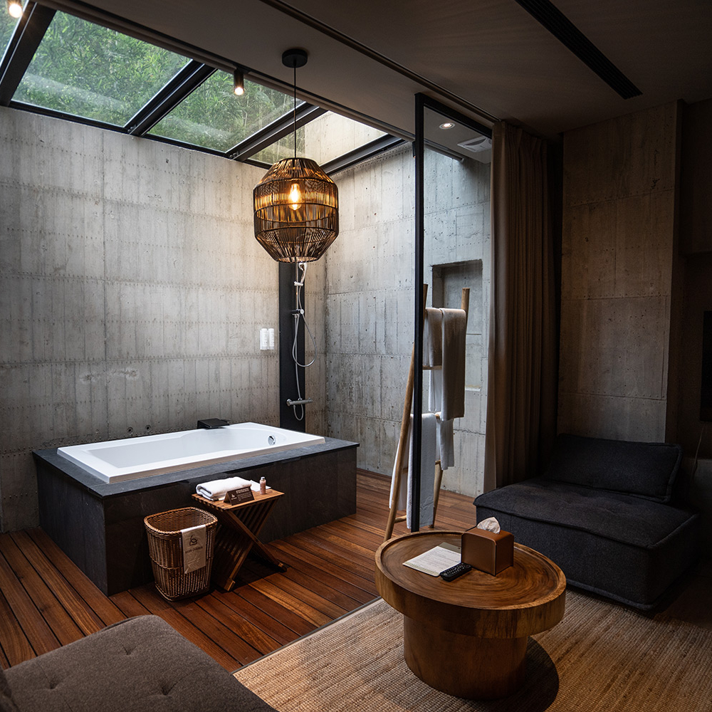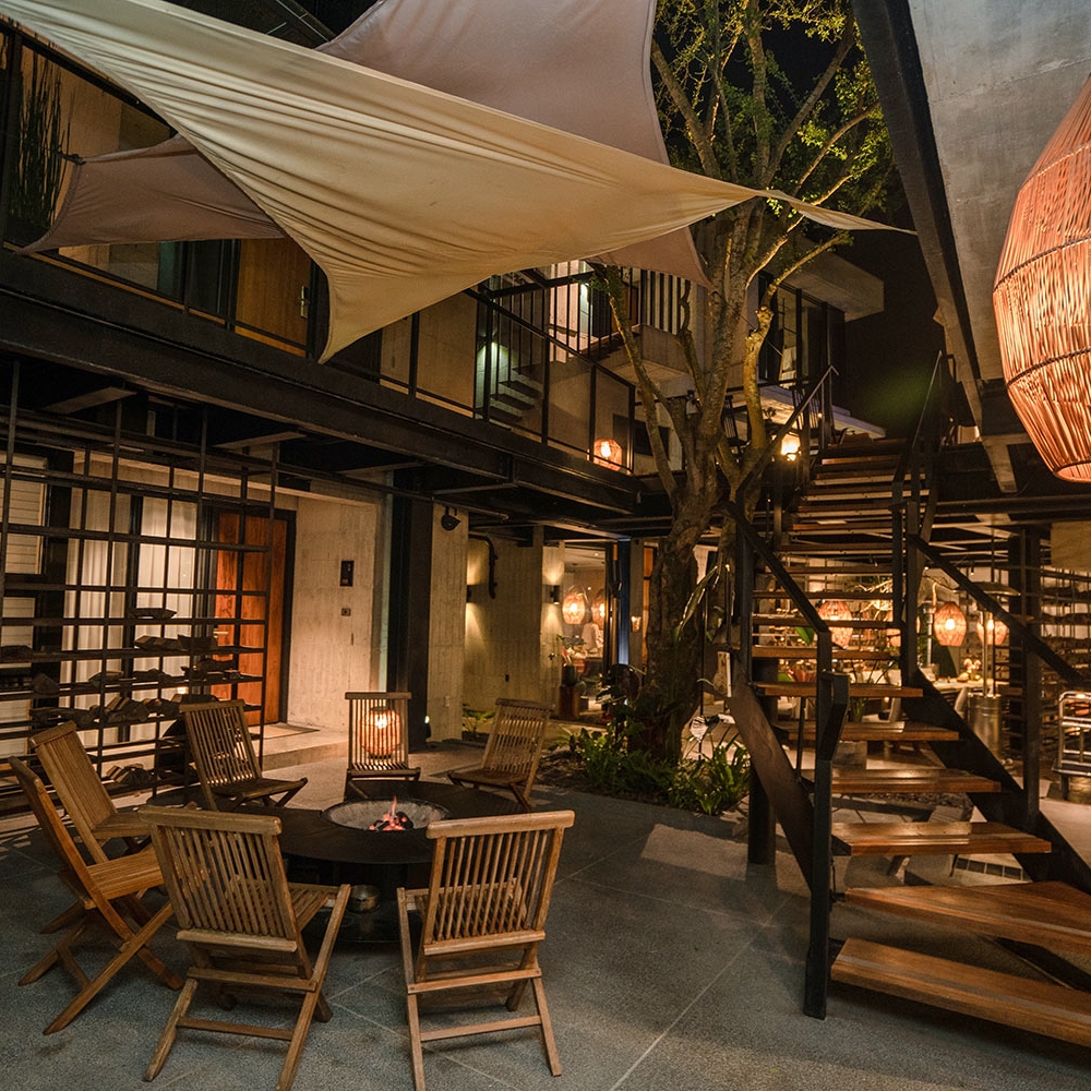 ★秘穴是樓中樓立體格局中,絕無僅有動線往下的雙人房型,獨享整層衛浴空間,客廳的大面落地窗;特別規劃私人小院落,坐在戶外躺椅,是唯一可以看到「野炊台」的專屬露台。