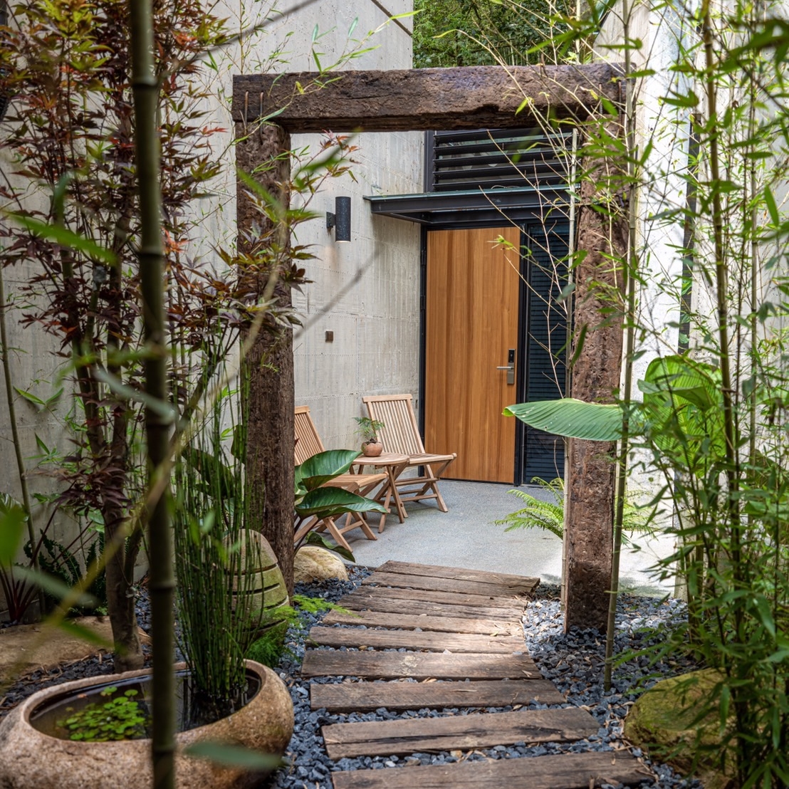 ★雪月屬於雙人房型,採平面式設計,門前小院,宛如一處遺世獨立的庭園隧道,獨享「織夢門」的院落景深。