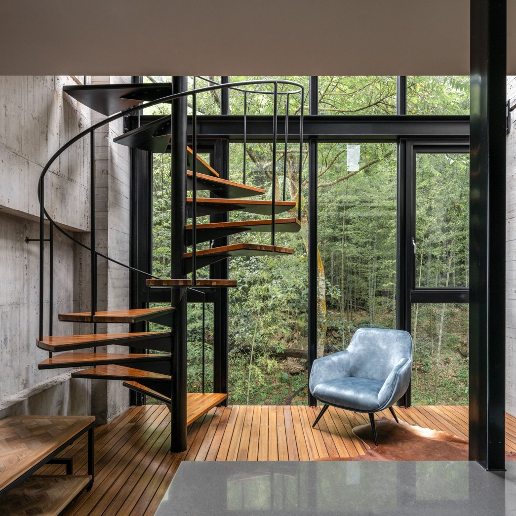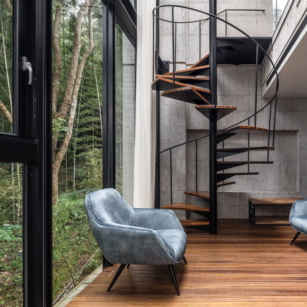 ★朝日屬於雙人房型,樓中樓立體格局,設計唯美旋轉梯,獨享挑高層客廳與帷幕天光玻璃。
