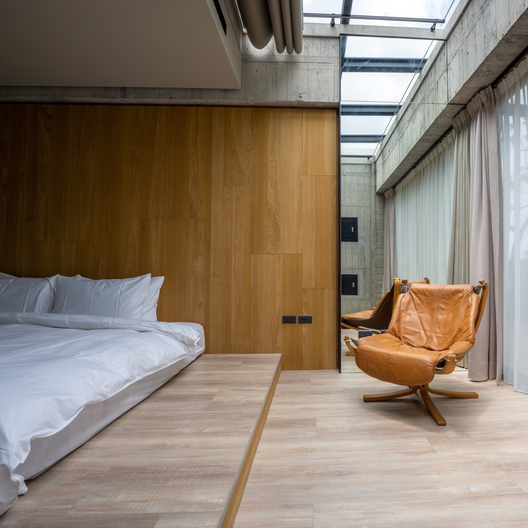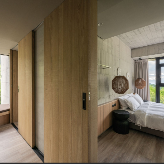 ★裊裊屬於雙人房型,樓中樓立體格局,獨享挑高層客廳與帷幕天光玻璃。